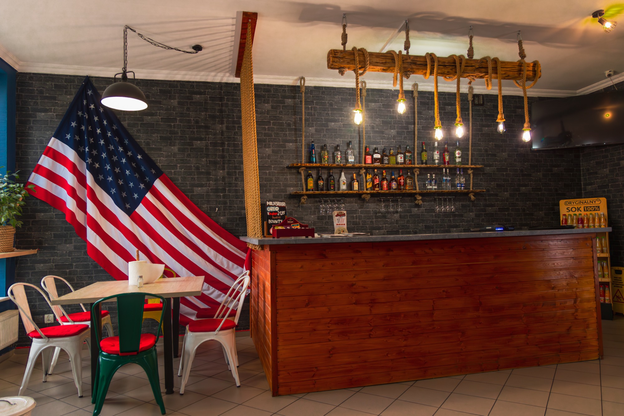W naszym lokalu nie brakuje miejsca, gdzie można wypić piwo, zjeść potrawy kuchni Amerykańskiej oraz cieszyć się smakiem wybieranej przez nas wołowiny, którą serwujemy w burgerach.
